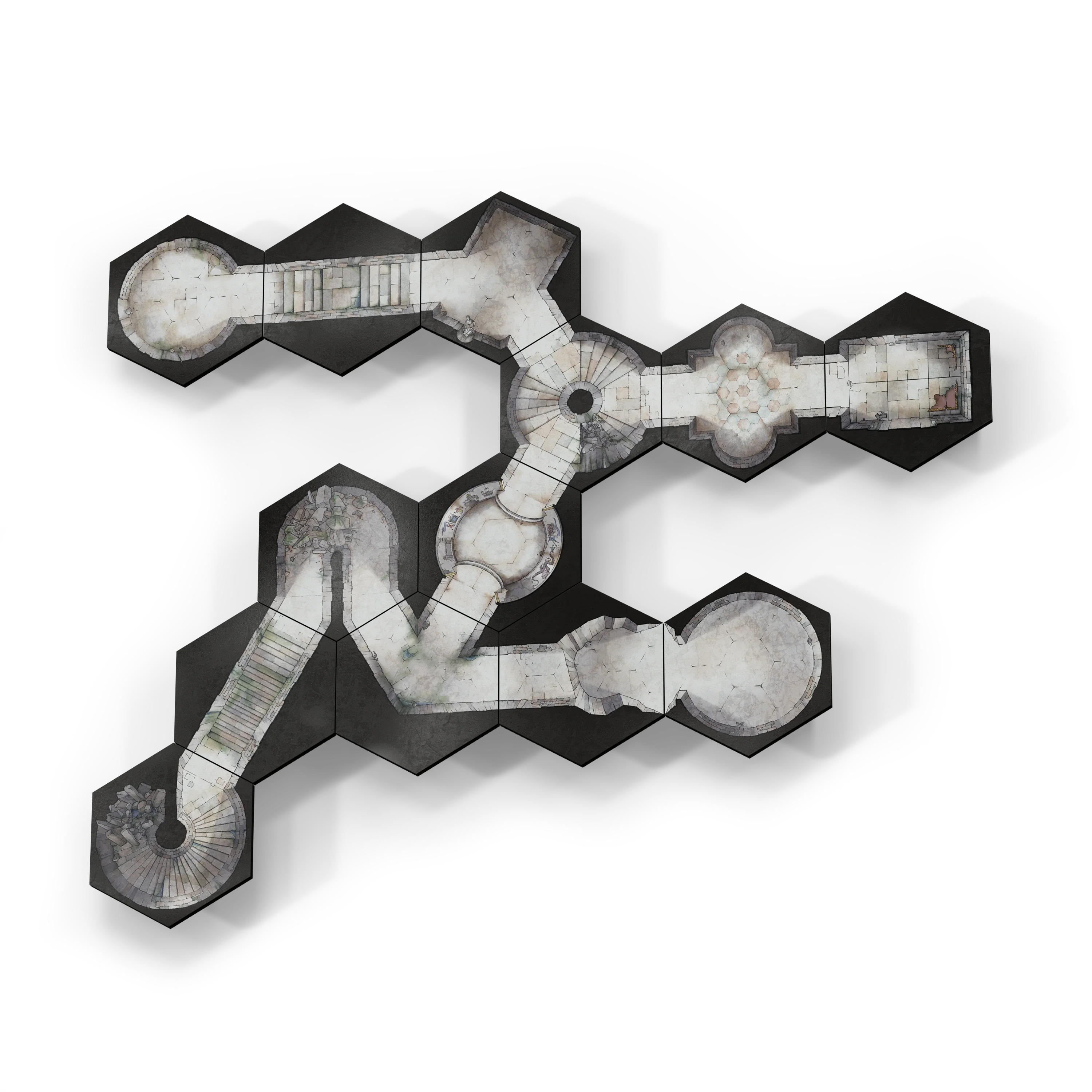 We highly recommend pairing Man Hewn Dungeons with Underground Caverns, as the Underground Caverns set provides seamless connections between many tiles in the Man Hewn Dungeons theme, making map-building easier and more versatile.