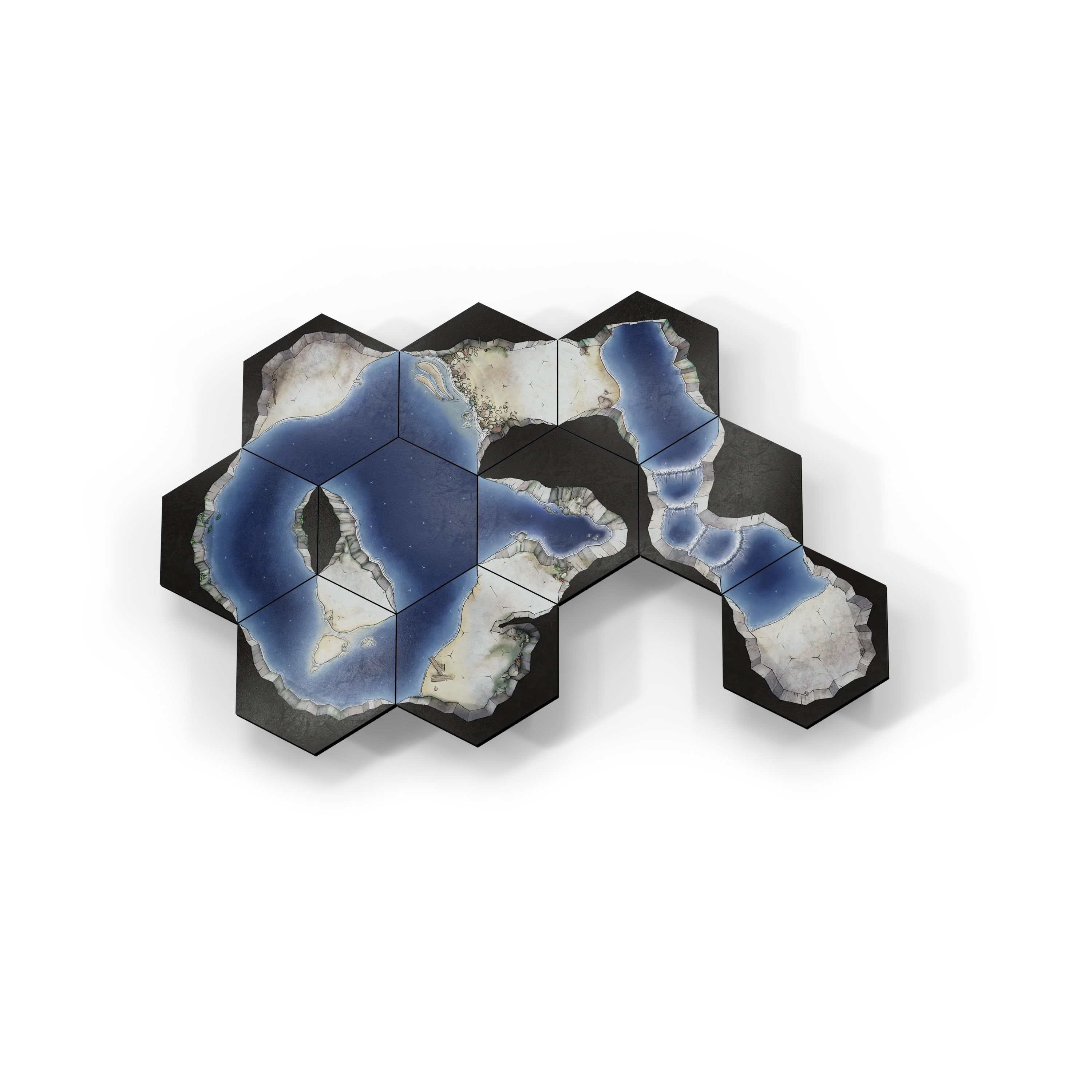 Use these tiles to create narrow rushing streams, deep underground lakes, or maze-like waterways that force players to navigate carefully. Every river bend, crumbling ledge, or darkened pool adds tension and excitement to your encounters.